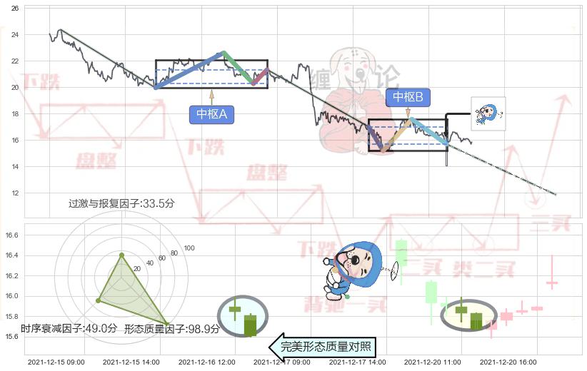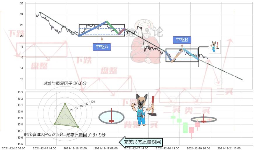 ➣ 下跌螺旋桨 + 缠论中枢点破位中枢B支撑下拉信号叠加后【信号初始稳固度】偏低,【看空】信号叠加【可信度影响降权】