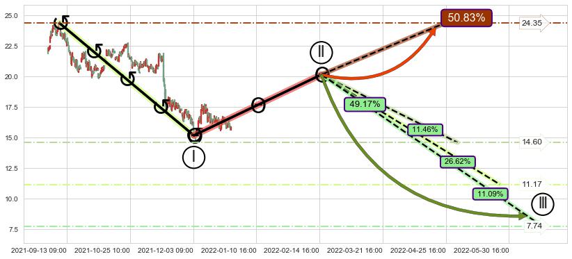 ➢ 循环浪继续向下【最低】位置(06-17:10, 7.74),匹配聚类样本比例22.55%, 可能性概率11.09%