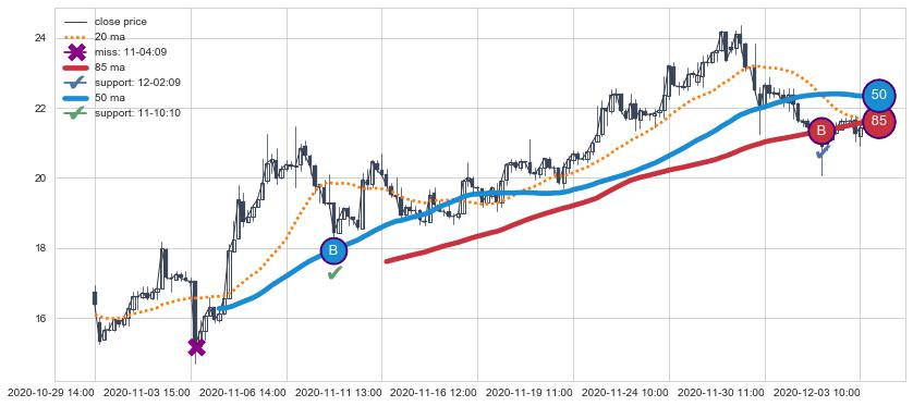 📝 多条均线形成死叉后走势最低价格达到: 20.55