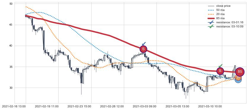 ➣ 历史趋势中共发现15处重要支撑阻力位,其中关键支撑位7处, 关键阻力位8处