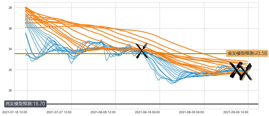 ➣ 60小时均线于(09-09 11:00: 21.82)形成【死叉】基于【死叉历史模型】预测死叉后最低波谷价格: 18.72, 死叉后最低价格21.63,尚未达到预测最低波谷价格, 预期继续下跌