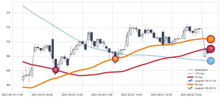 📝 多条均线形成死叉后走势最低价格达到: 176.50