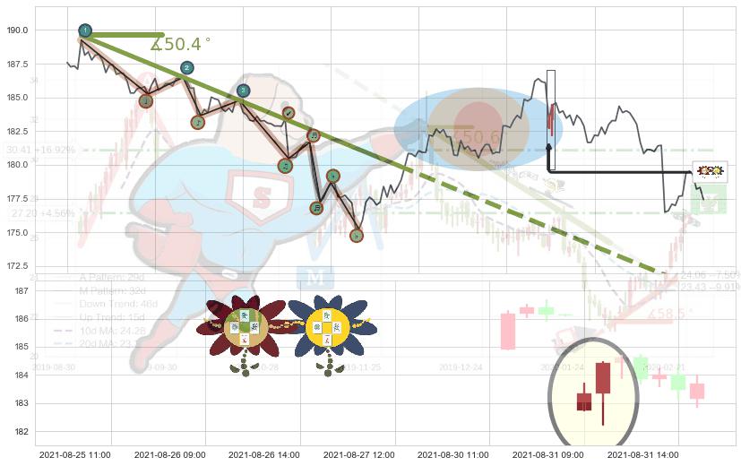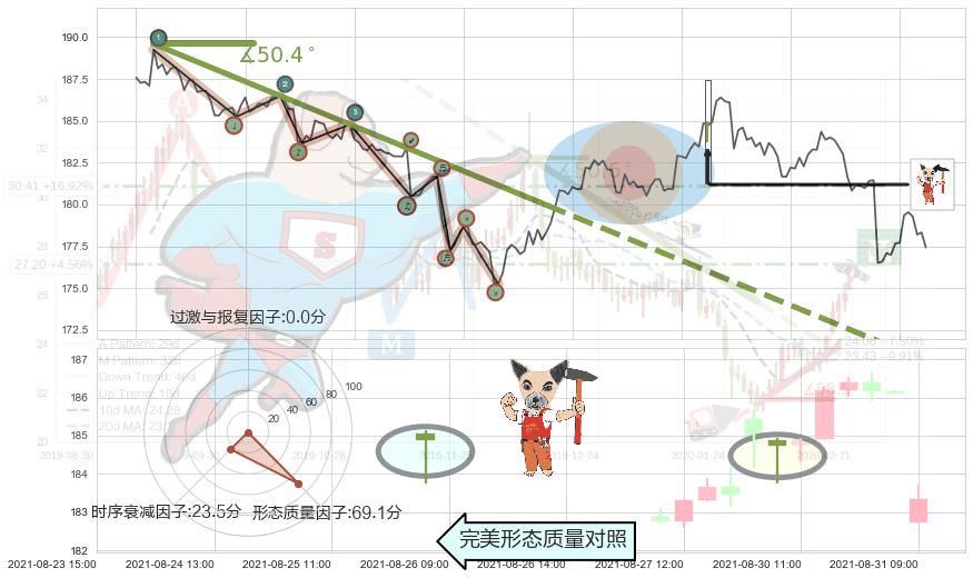 ➣ 2021-08-03 10:00-2021-08-20 13:00下跌趋势存在反转上涨[机会],其原下跌趋势的阻力位(170.67)已被突破[强支撑信号],原下跌趋势角度: 50.4˚