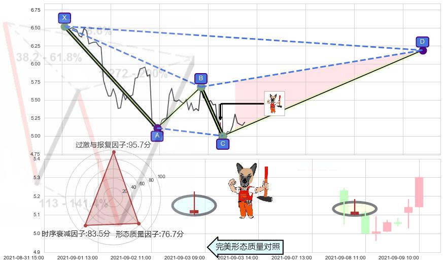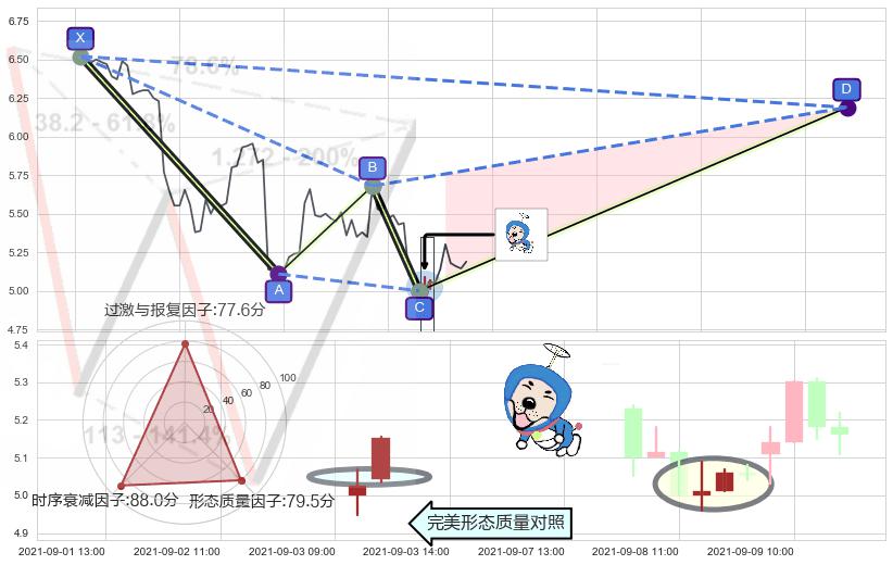 ➢ 🕰 价格走势在2021-09-08 12:00:00至2021-09-08 13:00:00期间形成上涨螺旋桨形态,残存影响值:6.53