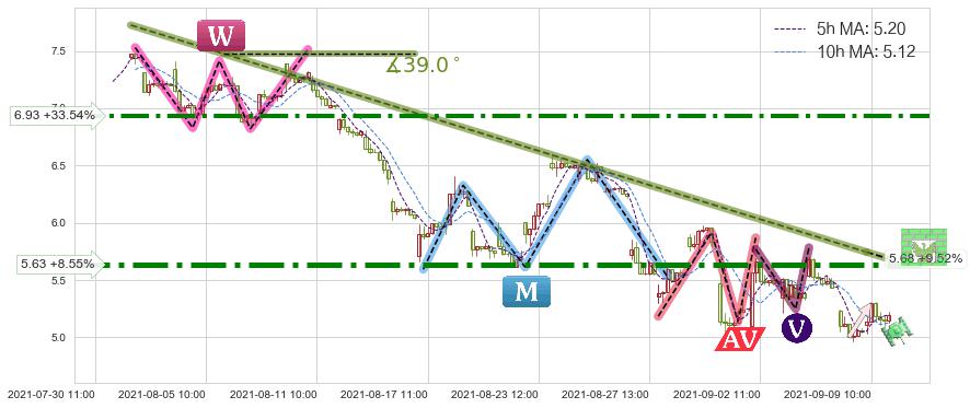 ➣ 预测:2021-09-17 14:00,【小幅反弹】稳定目前下跌趋势的前提下,预测价格:5.25