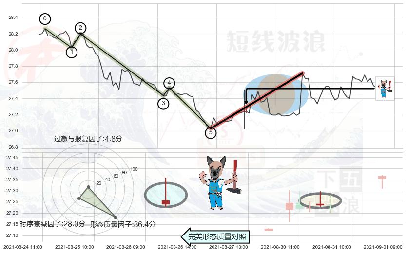 从2021-09-01 14:00至2021-09-08 13:00,共包含28个小时,阶段股价上涨1.87%,阶段股价变动位移路程比: 1 : 4