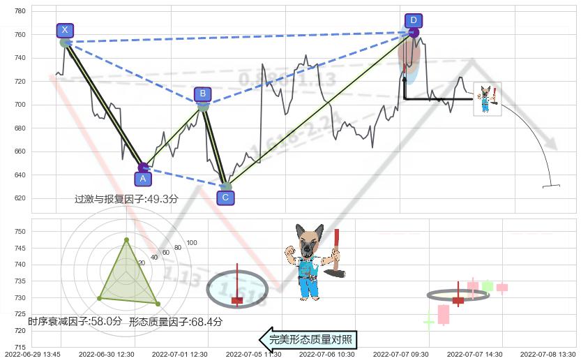 ➢ 🕰 价格走势在2022-07-07 11:30:00至2022-07-07 11:30:00期间形成看跌(高位倒锤头)流星线,残存影响值:-5.54