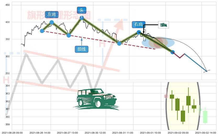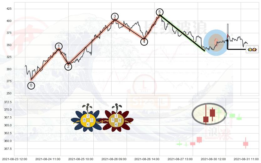 ➢ 收盘价(08-31:10: 357.63 )→回踩→第一根k线高点(08-27:14: 361.29 )