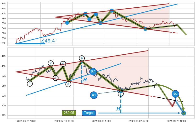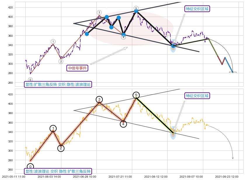 ➣ 【仅预测突破】最后价格:352.59与预测突破价格:337.65→【空间临近】后续最小【反转】第一目标价格→(09-23:12: 280.95 )