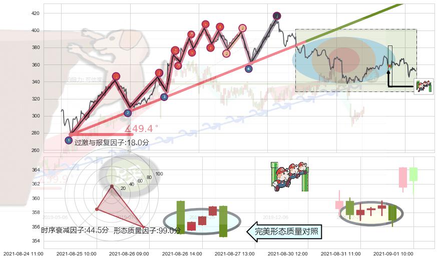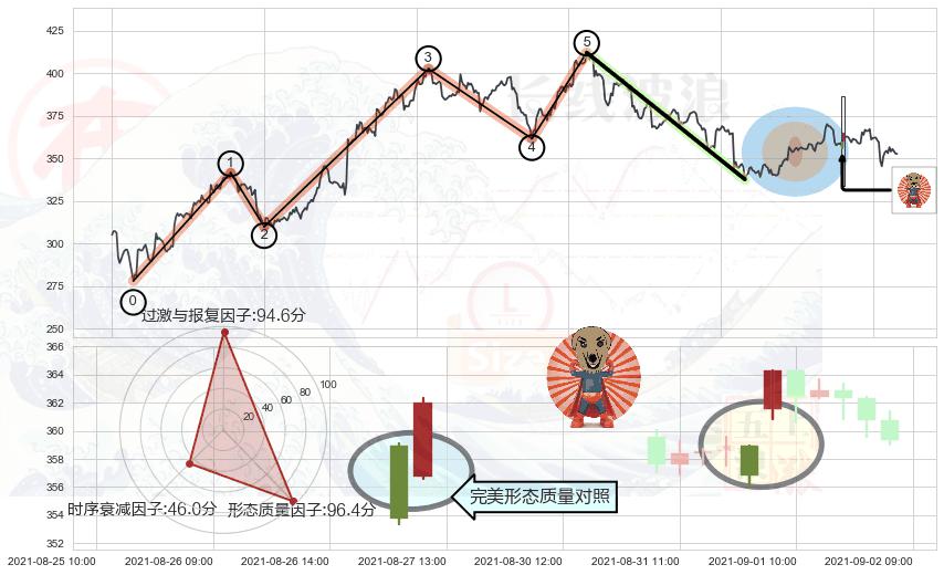 ➢ 🕰 价格走势在2021-09-01 12:00:00至2021-09-02 10:00:00期间形成高档五阴线,残存影响值:-1.72