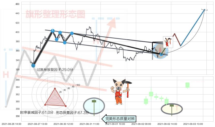 ➣ 【未确认突破,预测即将形成突破】降⚑旗形起点:06-16:13, 预测突破点:09-14:12,形态共383交易小时