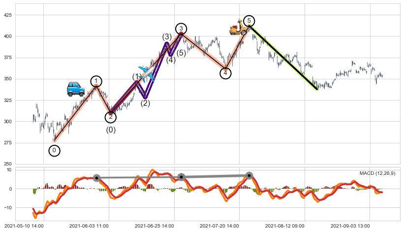 ➣ ['回调abc识别为: 【锯齿型调整浪】 ', '锯齿型:子浪535结构 ⓑ点振幅较小,ⓒ点继续发力远超ⓐ点结束位置']