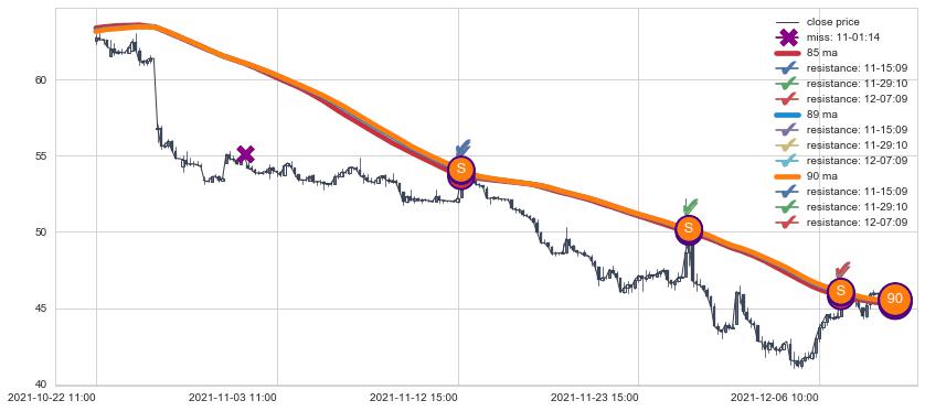 ➢ 最优均线组合共正确确认支撑阻力信号4处,正确确认率 40.00%