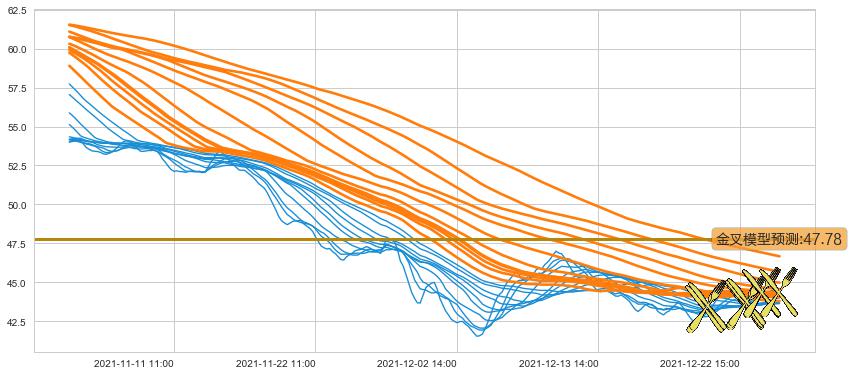 ➢ 60小时均线于(12-23 10:00: 43.72)形成【金叉】基于【金叉历史模型】预测金叉后最高波峰价格: 47.23, 金叉后最高价格44.73,尚未达到预测最高波峰价格, 预期继续上涨