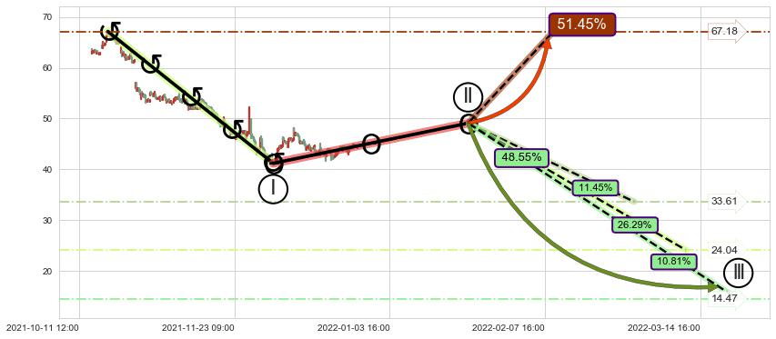 ➣ 大趋势循环浪继续向下概率48.55%