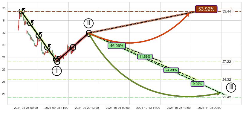 ➢ 循环浪继续向下【最低】位置(11-09:12, 21.42),匹配聚类样本比例21.69%, 可能性概率9.99%