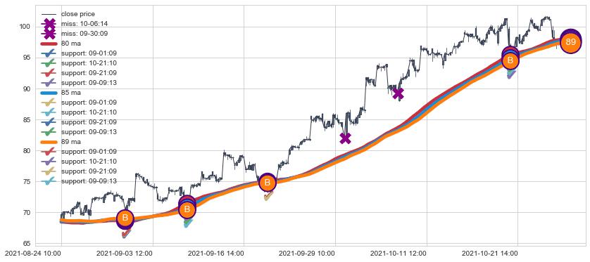 📝 多条均线形成金叉后走势最高价格达到: 87.53