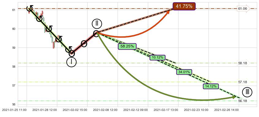 ➣ 循环浪继续向下【平均值】位置(02-23:12, 57.18),匹配聚类样本比例58.39%, 可能性概率34.01%