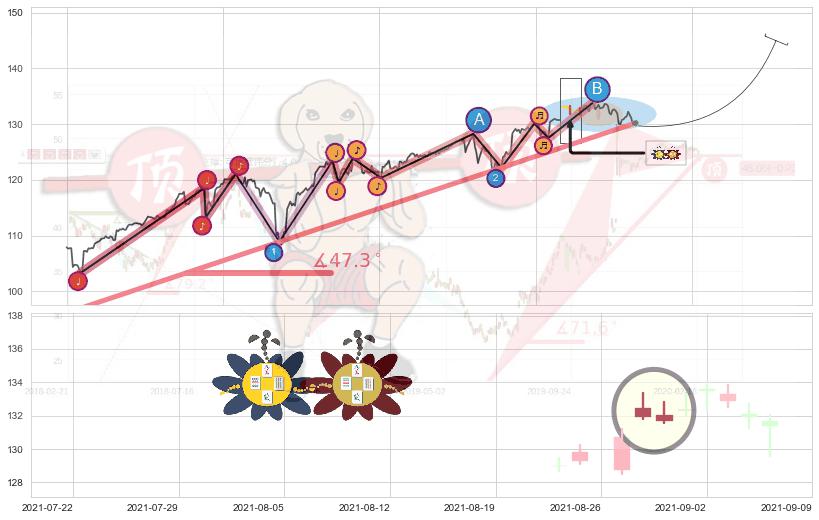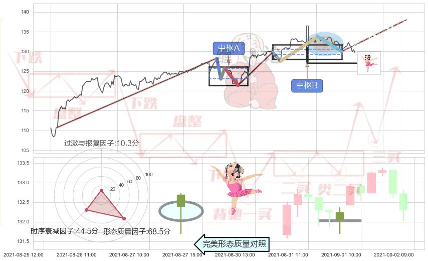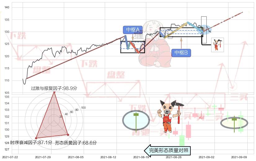 🍖 长线趋势跟踪组合短线均值回复[强支撑信号]2021-06-18 14:00-2021-09-09 13:00上升趋势依然成立(上涨趋势跟踪依然可行),短线价格略微下行回调(均值回复猜想),即将接近趋势提供的未破位的支撑价格:130.25。