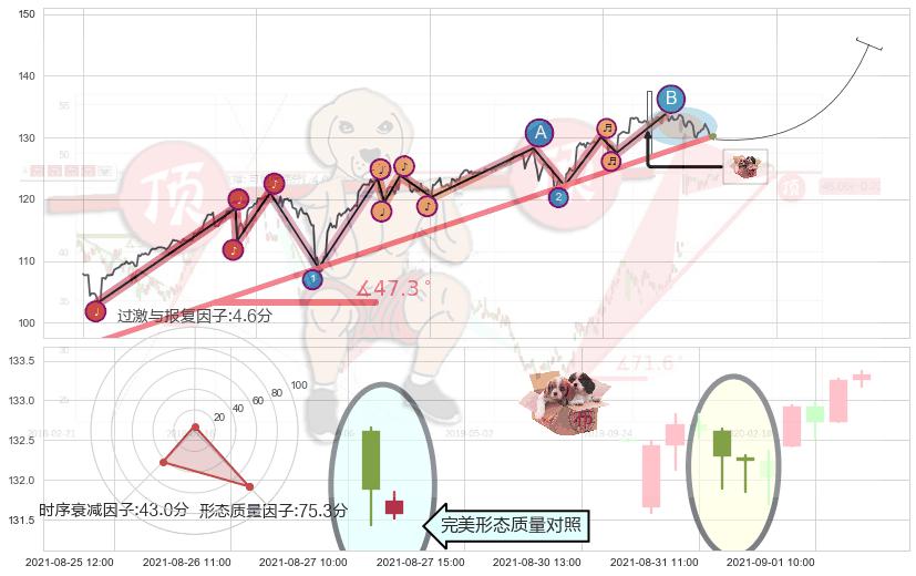 ➢ 🕰 价格走势在2021-08-31 12:00:00至2021-08-31 13:00:00期间形成底部尽头线(上山虎),残存影响值:2.08
