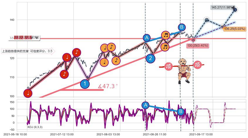 ➣ 预测:2021-09-22 15:00,【试探支撑】稳定目前上涨趋势的前提下,预测价格:136.25