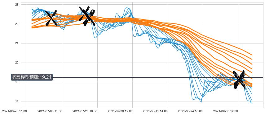 ➣ 80小时均线于(07-02 14:00: 22.27)形成【死叉】基于【死叉历史模型】预测死叉后最低波谷价格: 21.18, 死叉后最低价格17.73,已经下跌超出预测最低波谷价格, 预期反弹