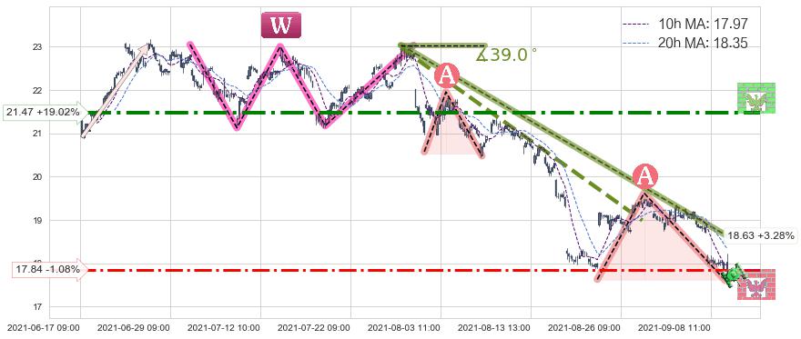 ♘ 阻力价格位21.47,可信任强度80.63%,距离最后交易2021-09-09 14:00形成的收盘价格18.04相差 +19.02%