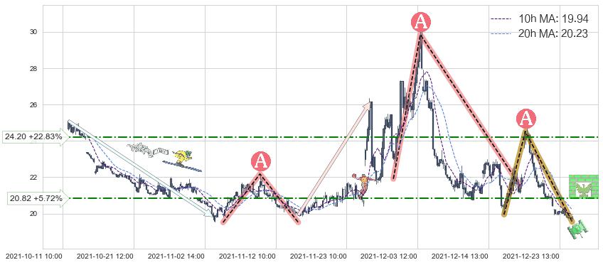 ♘ 阻力价格位24.20,可信任强度48.51%,距离最后交易2021-12-27 15:00形成的收盘价格19.70相差 +22.83%