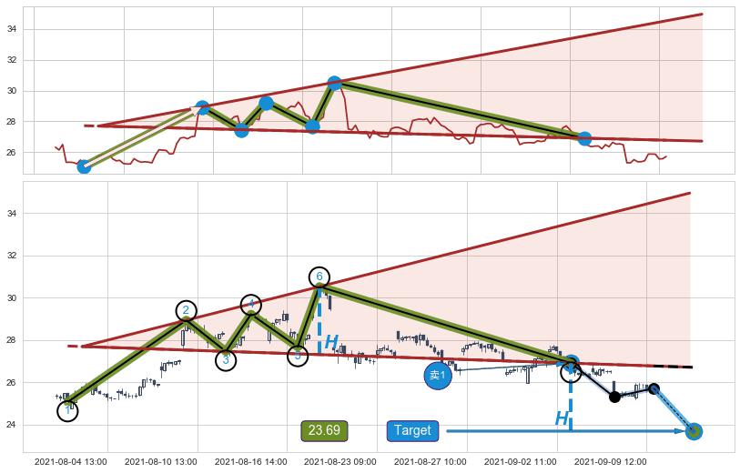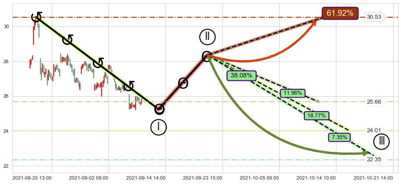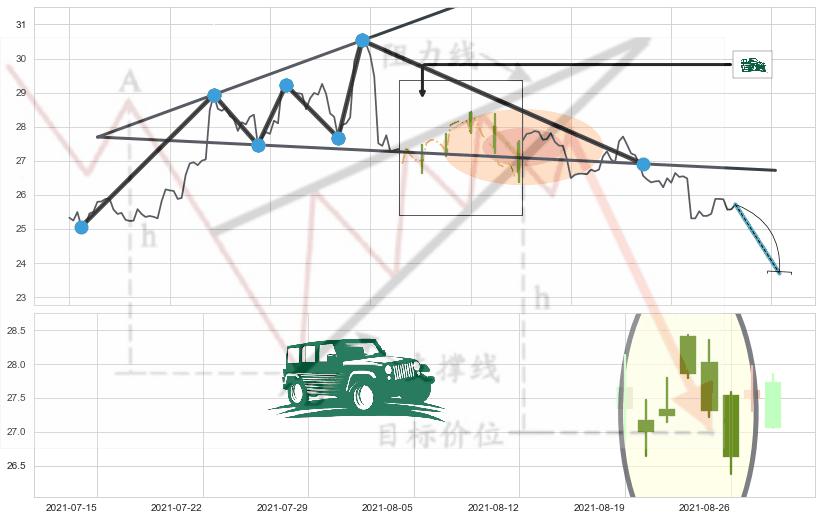 2021-08-17: 第一阻力位27.69有效抑制了下跌浪,成功阻止了价格的继续下跌。
