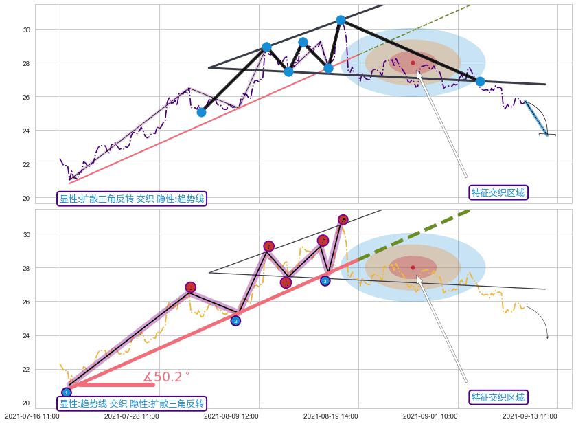 ➢ 2021-07-19 09:00-2021-08-19 14:00上升趋势存在反转[风险],其原上升趋势的支撑位(32.89)已破位[强阻力信号],原上升趋势角度: 50.2˚