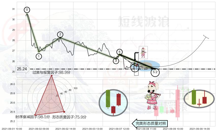 ➣ 5.1: 预测当前第5浪位置(09-09:12, 25.57),仍然有下跌空间