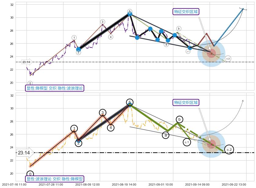 ➢ 循环浪继续向下【最低】位置(10-21:14, 22.35),匹配聚类样本比例19.31%, 可能性概率7.35%