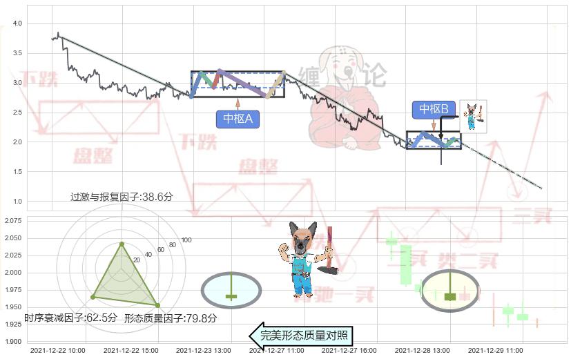 ➣ 缠论中枢点:下降缠中枢B破位后距离1买距离较远,随后猜想后续持续下跌(趋势跟踪)