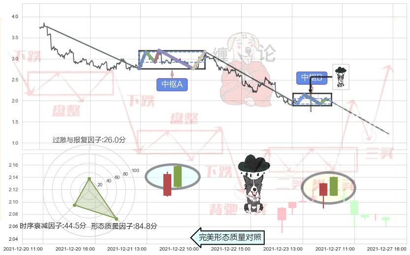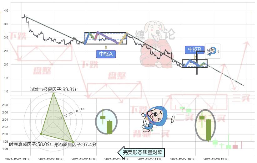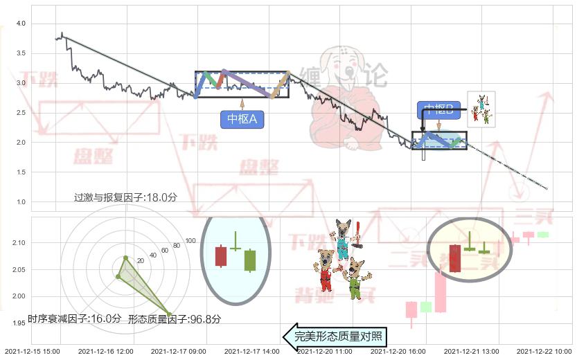 ➣ 下跌螺旋桨 + 缠论中枢点破位中枢B支撑下拉信号叠加后【目标达成率】中等,【看空】信号叠加【存续影响中等】