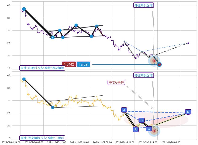 ➢ 谐波蝙蝠属【中级别信号事件】升旗形属【长级别信号事件】中长周期组合信号事件,中长事件长度比36.49%