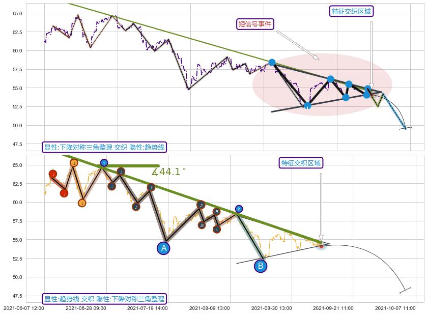 ➢ 下降对称三角整理属【中级别信号事件】缠论中枢点属【长级别信号事件】中长周期组合信号事件,中长事件长度比43.35%