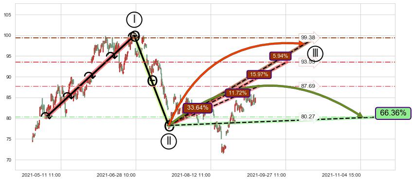 ➣ 大趋势循环浪继续向上概率33.64%