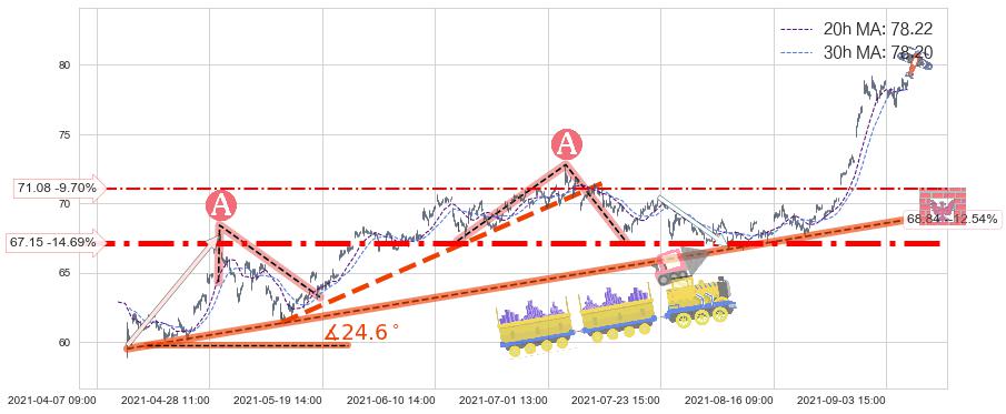➢ 预测:2021-10-21 11:00,【小幅回撤】稳定目前上涨趋势的前提下,预测价格:71.63