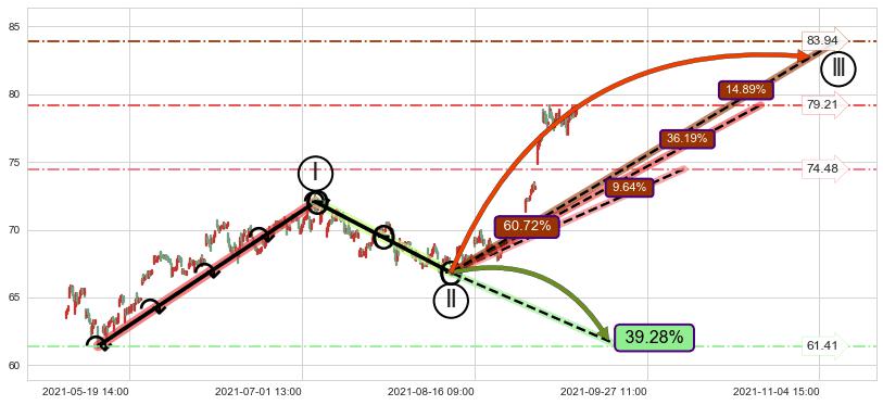 ➢ 循环浪继续向上【最低】位置(10-05:12, 74.48),匹配聚类样本比例15.87%, 可能性概率9.64%