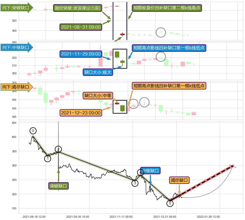 ➢ 2021-12-23 09:00形成:向下跳空【竭尽】缺口
