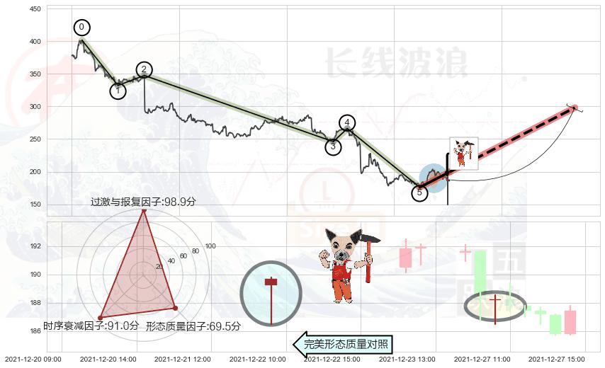 ➢ 🕰 价格走势在2021-12-27 10:00:00至2021-12-27 10:00:00期间形成锤头线(锤子线),残存影响值:7.40