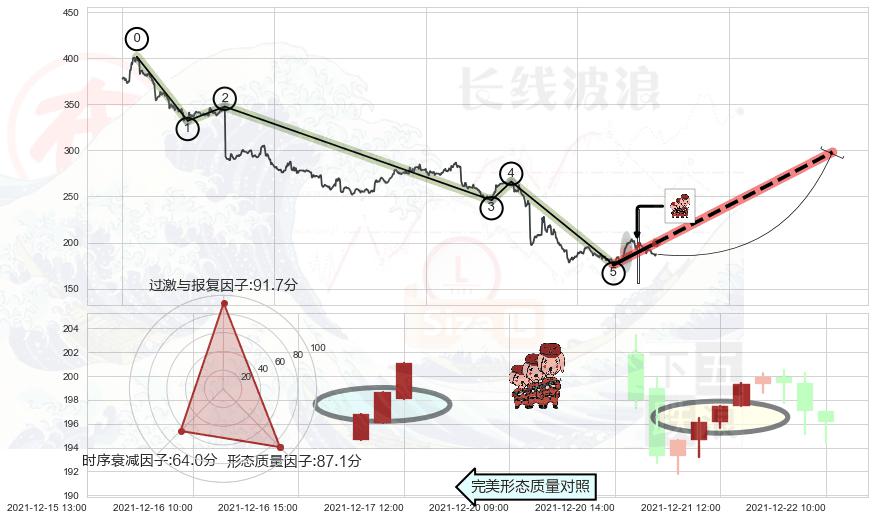 ➢ 🕰 价格走势在2021-12-22 10:00:00至2021-12-22 10:00:00期间形成单针探底(定海神针),残存影响值:6.75