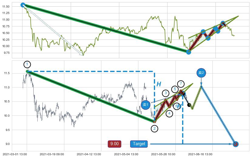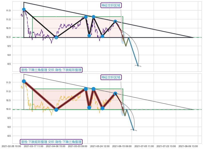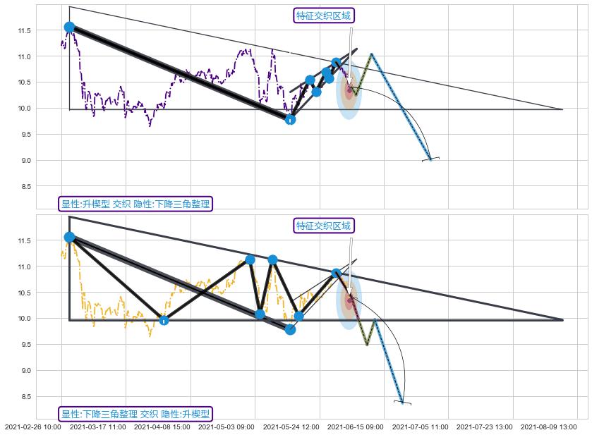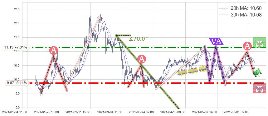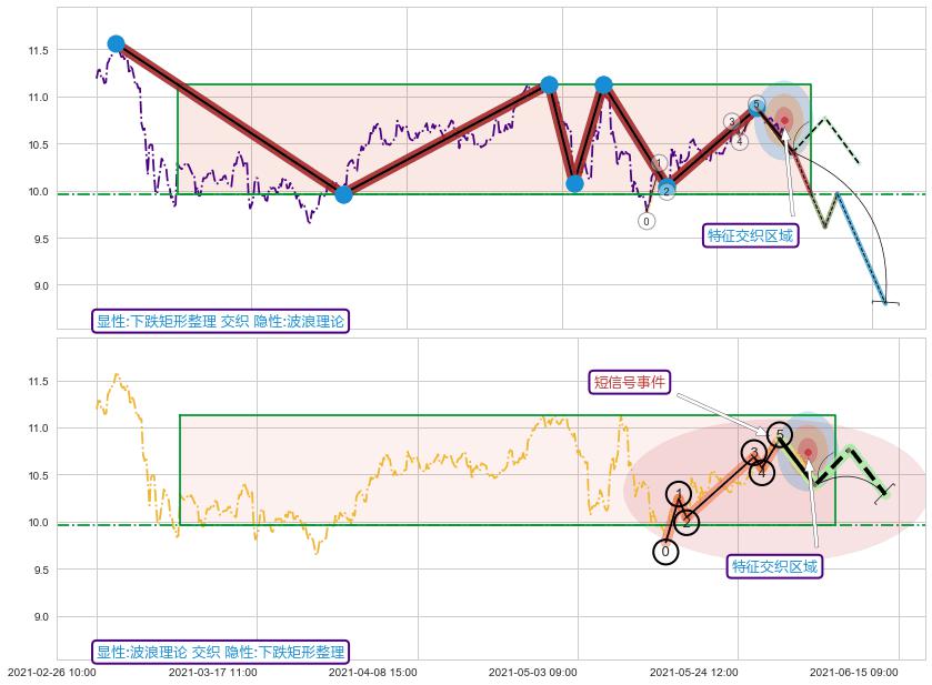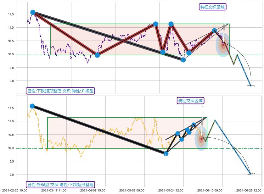 ➢ 【仅预测突破】最后价格:10.40与预测突破价格:9.96→【空间临近】后续最小【整理】第一目标价格→(06-21:10: 8.36 )