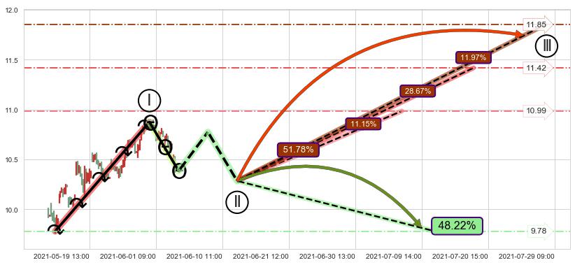 ➣ 如卖出理由为abc向下回调,但高概率大级别循环浪继续上涨,继续上涨概率51.78%