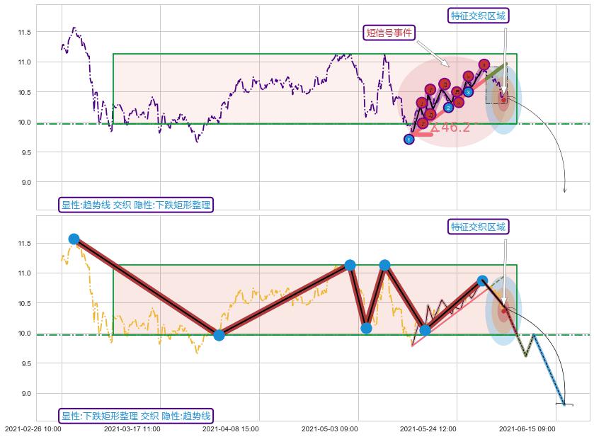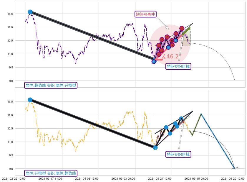 ➢ 2021-05-13 12:00-2021-05-28 15:00上升趋势存在反转[风险],其原上升趋势的支撑位(10.96)已破位[强阻力信号],原上升趋势角度: 46.2˚