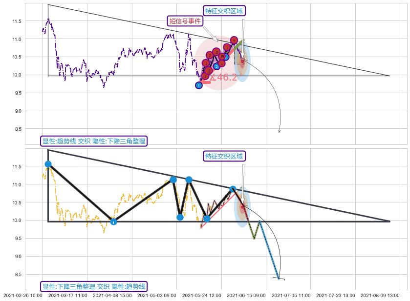 ➢ 趋势线属【短级别信号事件】下降三角整理属【长级别信号事件】长短周期组合信号事件, 短长事件长度比18.22%