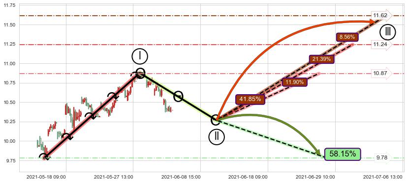 ➢ 循环浪继续向上【最低】位置(06-25:12, 10.87),匹配聚类样本比例28.43%, 可能性概率11.90%