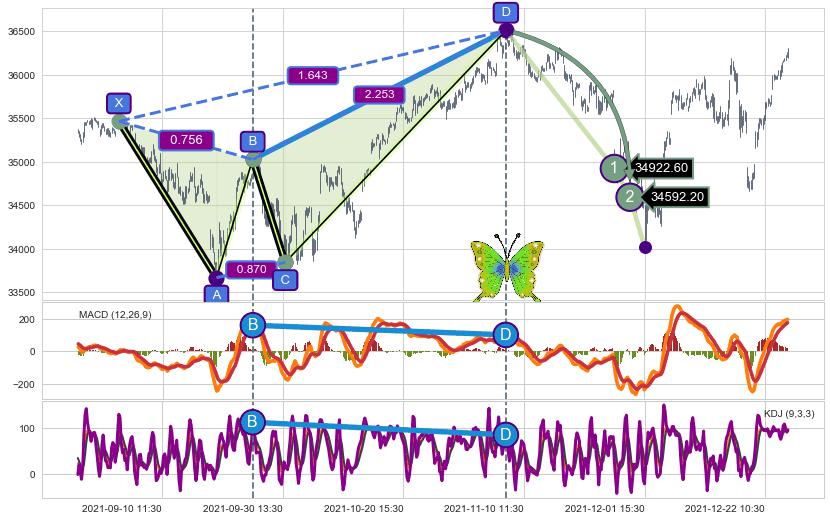 ➣ 已完成【蝴蝶】形态起点X: 09-02:11, 终点D: 11-08:10, 共322交易小时