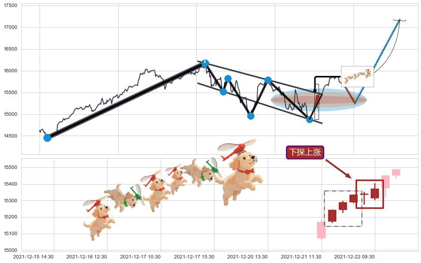➢ 低点影线(12-21:10: 15015.20 )→回踩→第二根k线低点(12-21:09: 15054.10 )