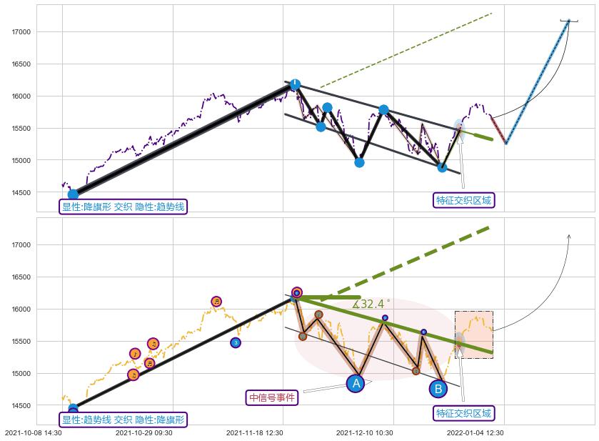 ➢ 最后的下跌趋势2021-11-22 09:30至2021-12-27 14:30:存在突破迹象,后续小反弹或者反转上涨